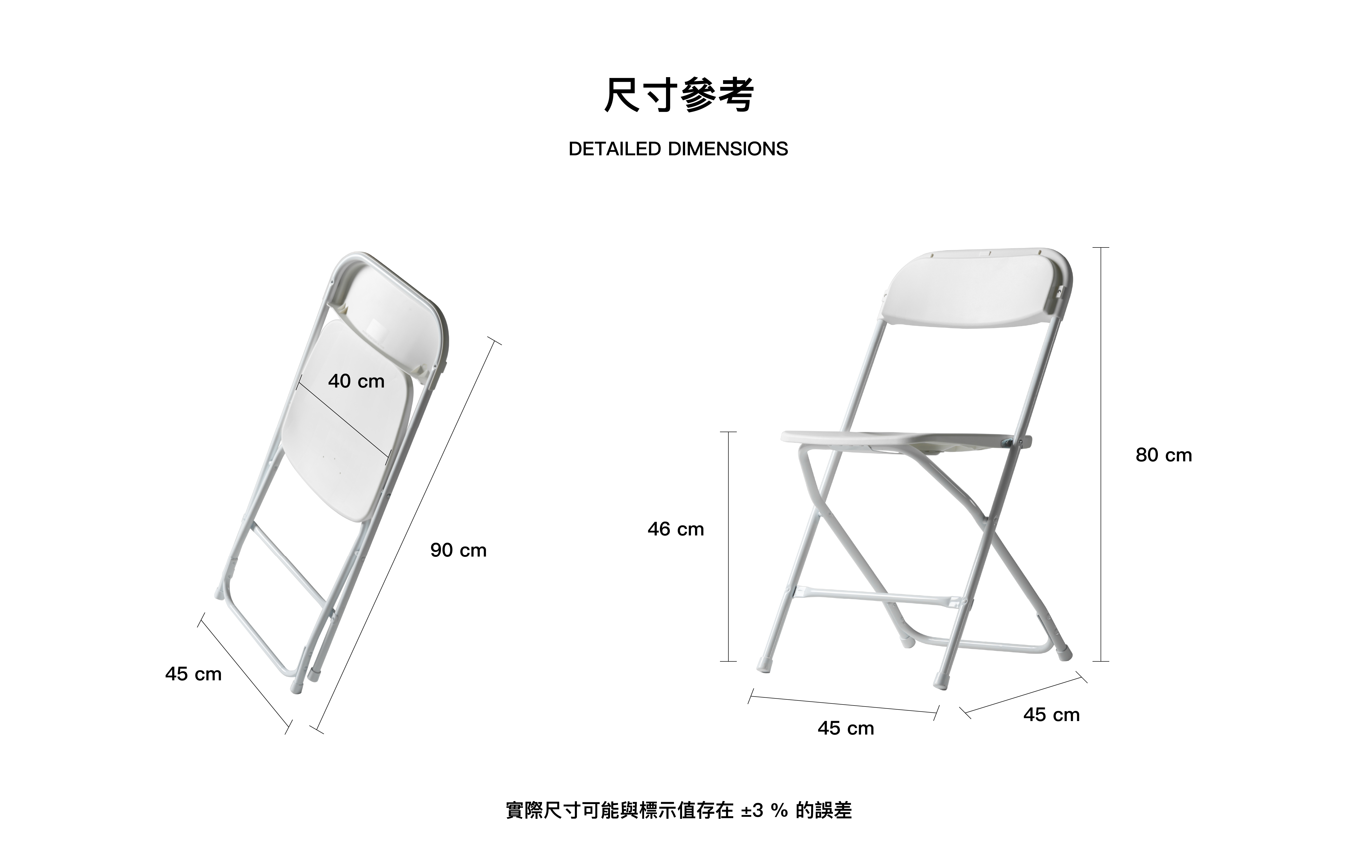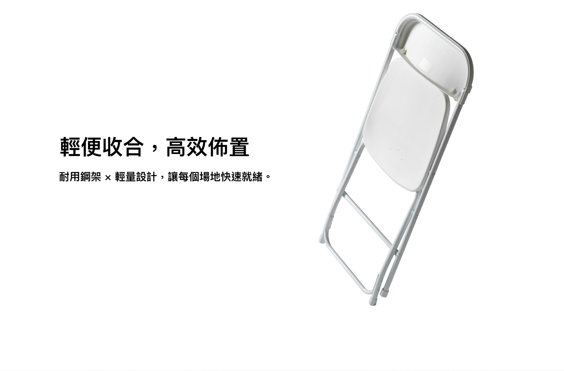 A:振盛折疊椅採用加厚鋼管與高密度 HDPE 塑料成形製造,經多點受力測試,標準承重可達約 120–150 公斤(依不同使用情境略有差異)。適用於活動、展場、學校、機關等長時間使用環境。