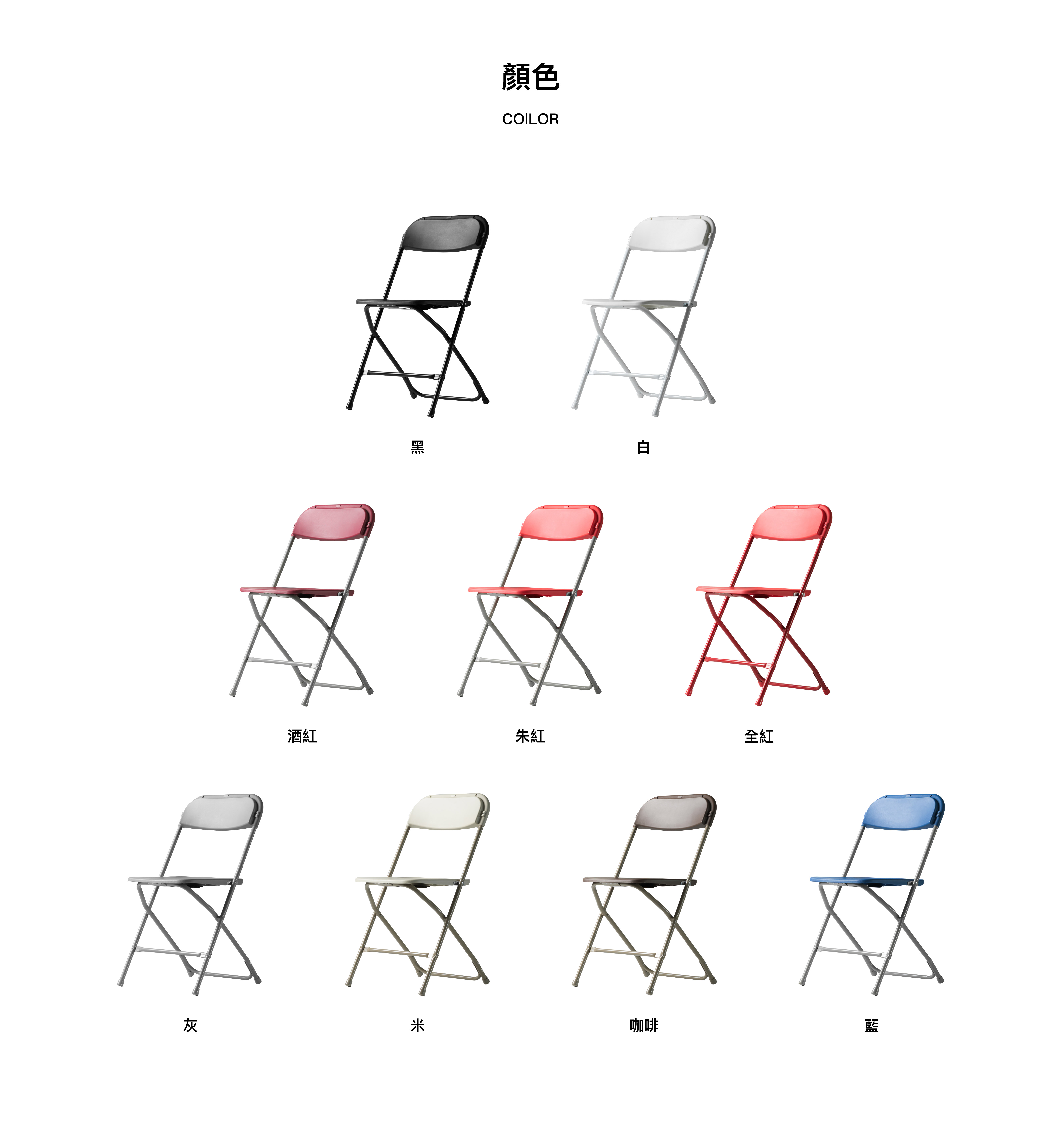 Q1:折疊椅有提供哪些顏色?可以客製嗎?